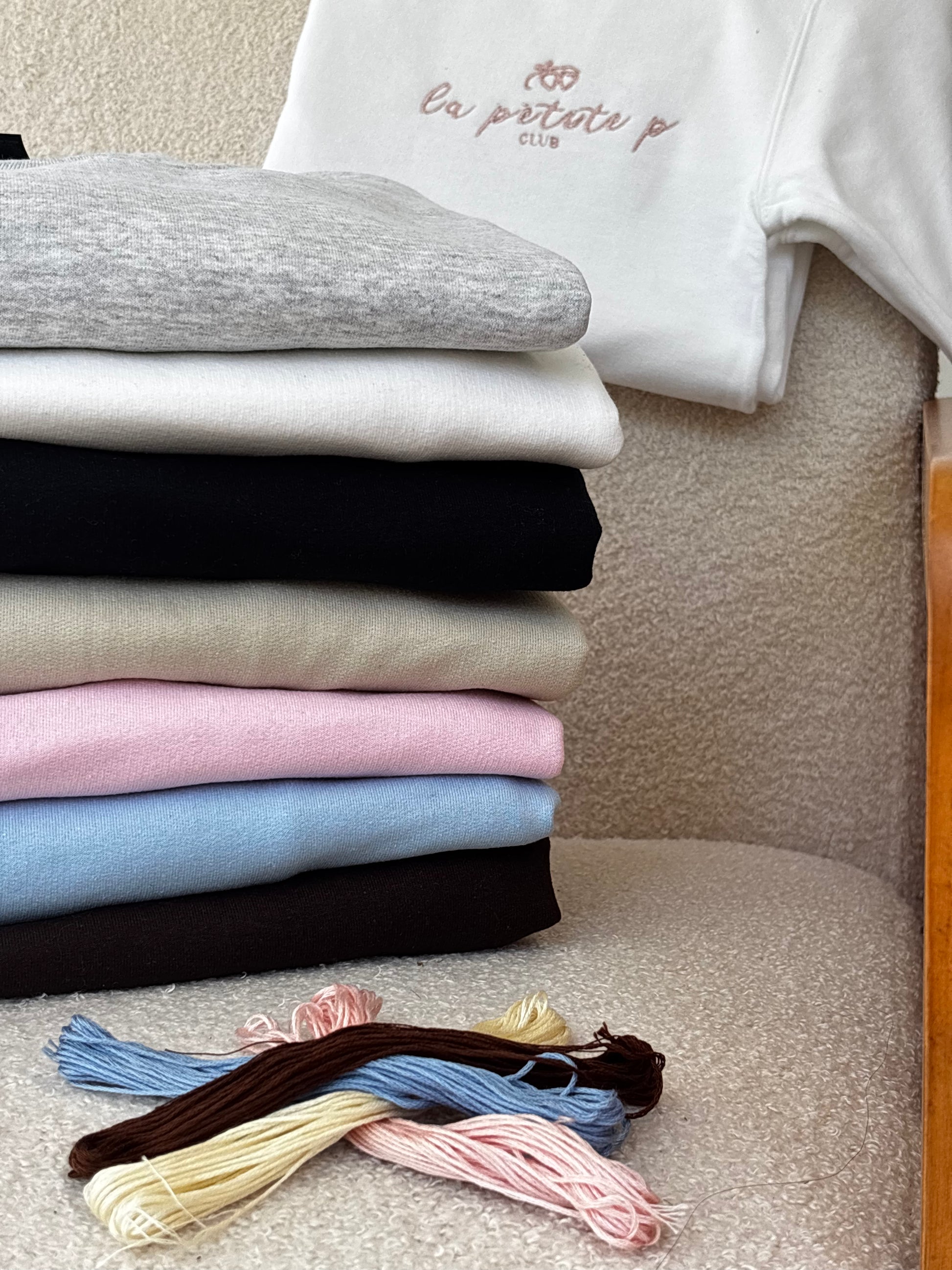 Crafted on ultra-soft fleece-lined crewnecks in dreamy shades like sand, ash, pink, and chocolate.